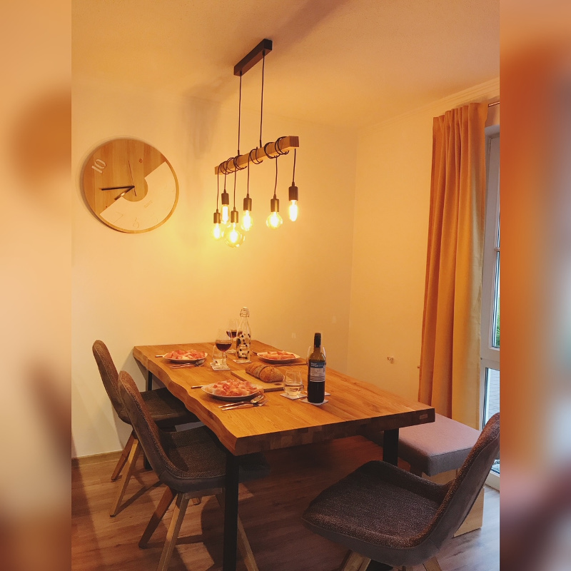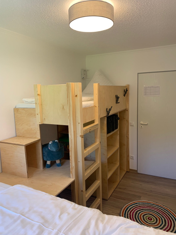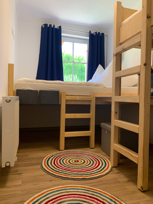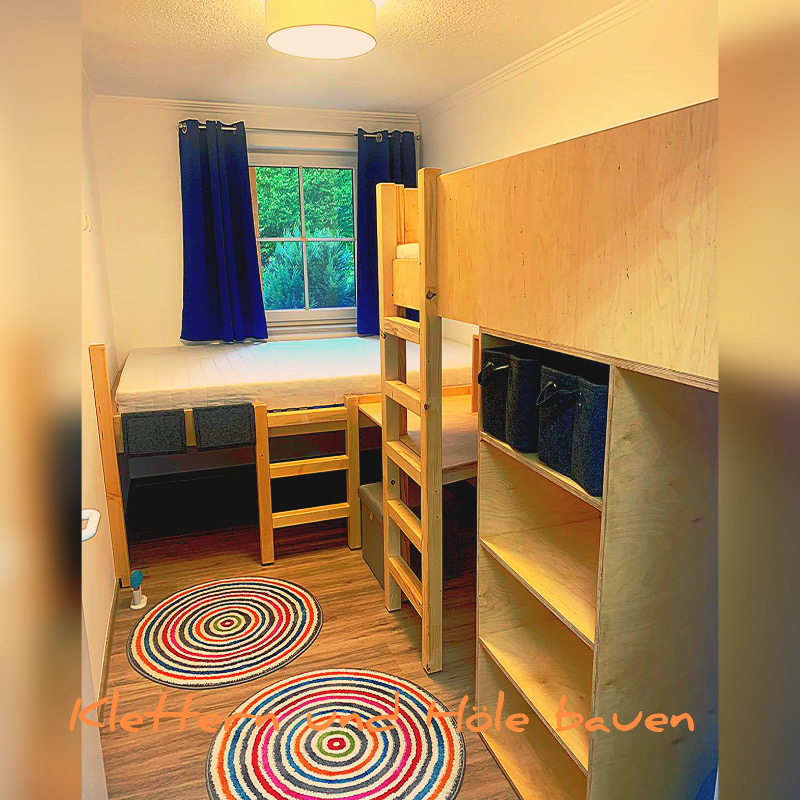 Terrasse, Dusche, Geschirrspüler, WLan Unsere FEWO 501 mit 5 Sternen nach DTV ist ein richtiger Familienschlager mit Top Ausstattung. Modern, gediegen und komplett saniert im Juni 2021! Erdgeschoss mit zwei Terrassen und Garten vor der Tür. Im Frühjahr 2025 haben auch die Terrasse für Euch neu gemacht. Ein versteckter Sonnenplatz nur für euch. Ein Kinderzimmer zum Träumen und verstecken für drei Kids. Eine top Küche mit umfangreicher, hochwertiger Ausstattung und so richtig Wohlfühlplatz im Wohnraum. Sie bietet damit die modernste und höchste Ausstattungsqualität, die man nach dem Deutschen Tourismusverband erzielen kann. Sie ist perfekt für drei Kids und zwei Erwachsene kann aber auch mit bis zu 7 Personen bewohnt werden, da das Sofa eine Schlaffunktion hat. Auf 65 qm Wohnfläche haben Sie ein Wohn-Schlafraum mit bequemer Doppelbettcouch und voll ausgestatteter Küchenaussattung, ein separates Schlafzimmer (mit Smart TV) mit Doppelbett und großem Kleiderschrank, sowie ein Kinderzimmer mit einem Hochbett und einem Loungebett mit 140 mal 200. Der voll ausgestattete Küchenbereich bietet Ihnen die höchste Ausstattung mit technischen Geräten wie Wasserkocher, Toaster, Senseo Kaffeeautomat, aber auch Mikrowelle, Ofen mit Induktionskochstellle, extra Gefrierschrank und Kühlschrank. Im Wohnzimmer haben Sie einen 58 Zoll Smart TV Bildschirm. Wir wünschen Ihnen einen schönen Urlaub im Feriendorf Schwarholz 501 anfragen/buchen